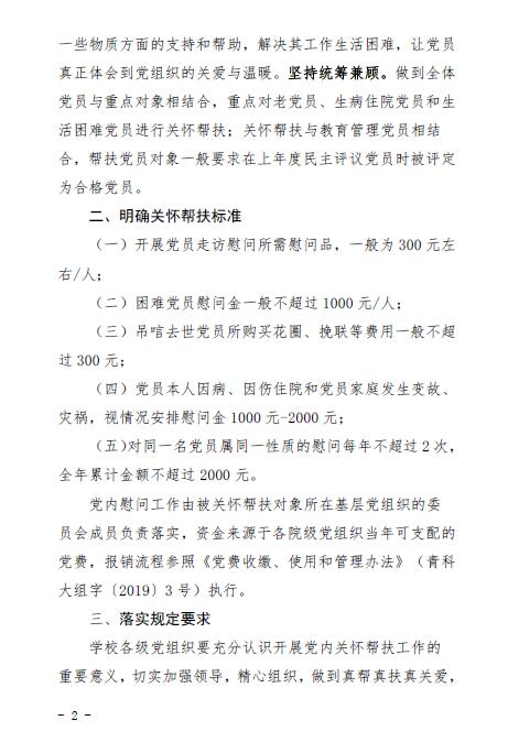 责。党委组织部门统筹协调党内关怀帮扶工作,教育、民政、